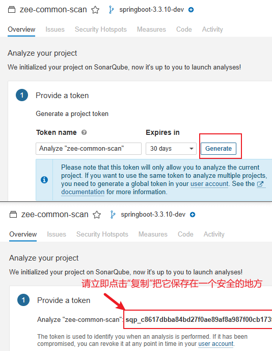 由于使用的是 docker 环境,上面生成的 sonar-scanner 命令不能直接使用,此时需要借助 sonarsource/sonar-scanner-cli
